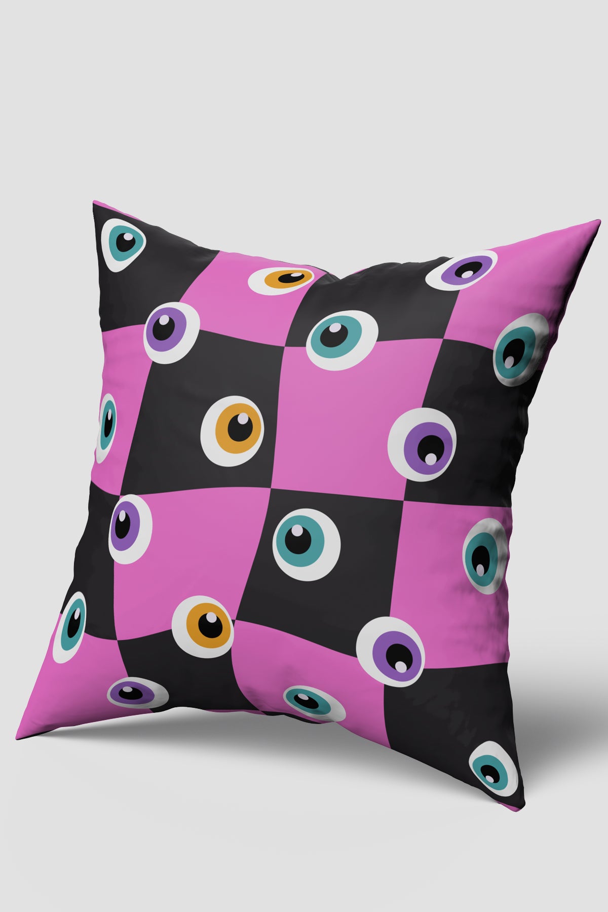 Pembe Siyah Göz Desenli Kırlent Kılıfı