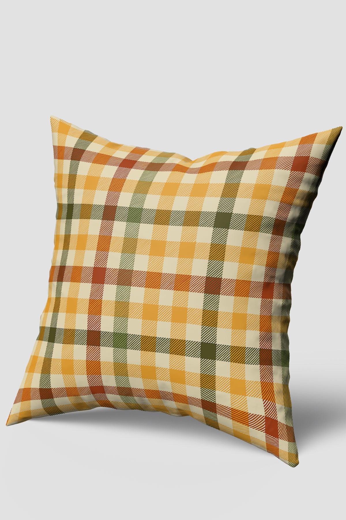 Ekose Desenli Sonbahar Renkli Kırlent Kılıfı