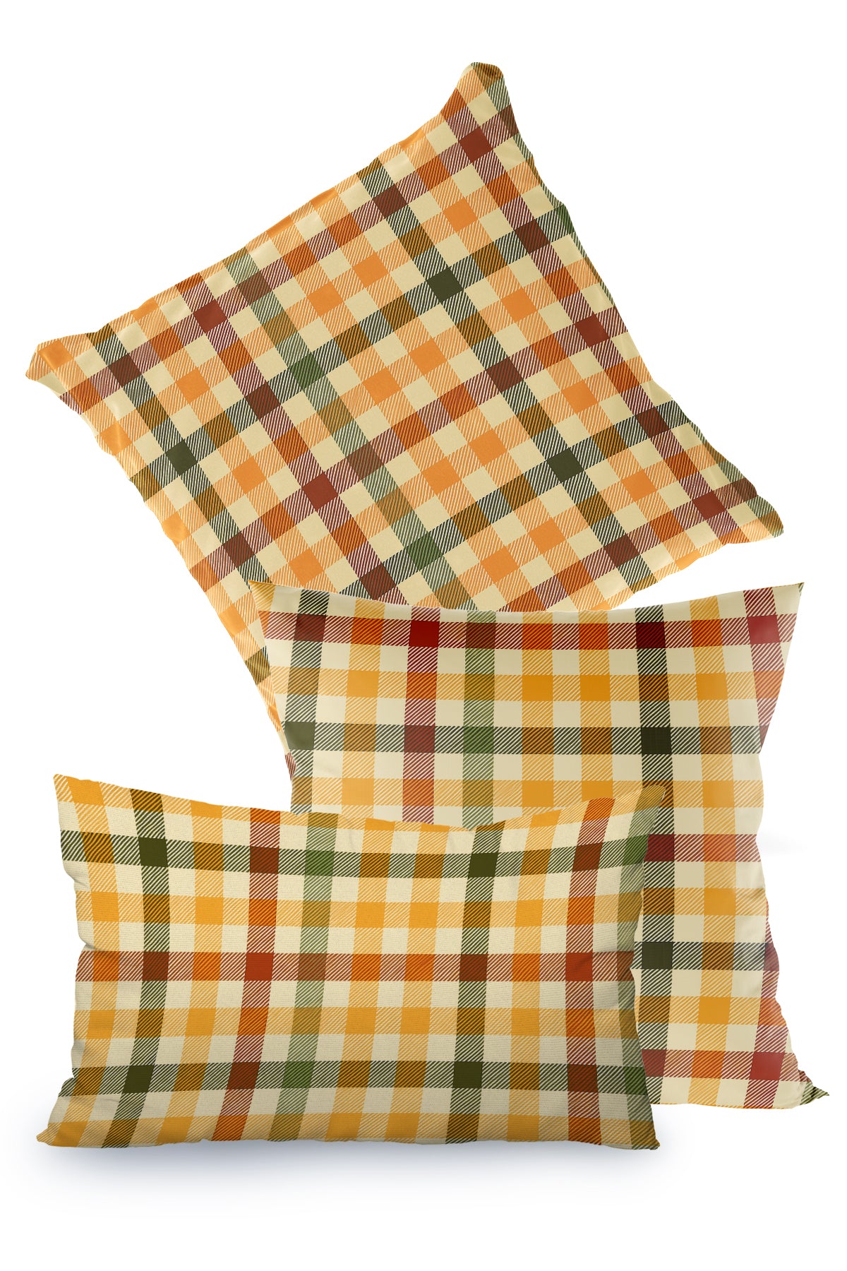 - Ekose Desenli Sonbahar Renkli Kırlent Kılıfı