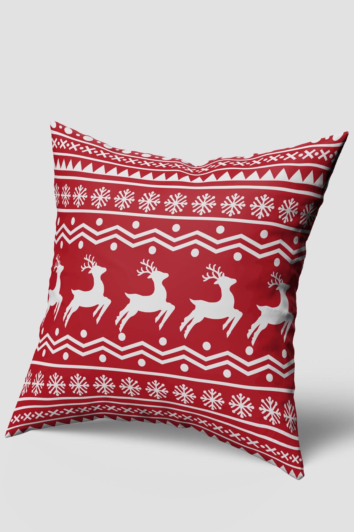 - Kırmızı Beyaz Geyik Desenli Yılbaşı Kırlent Kılıfı