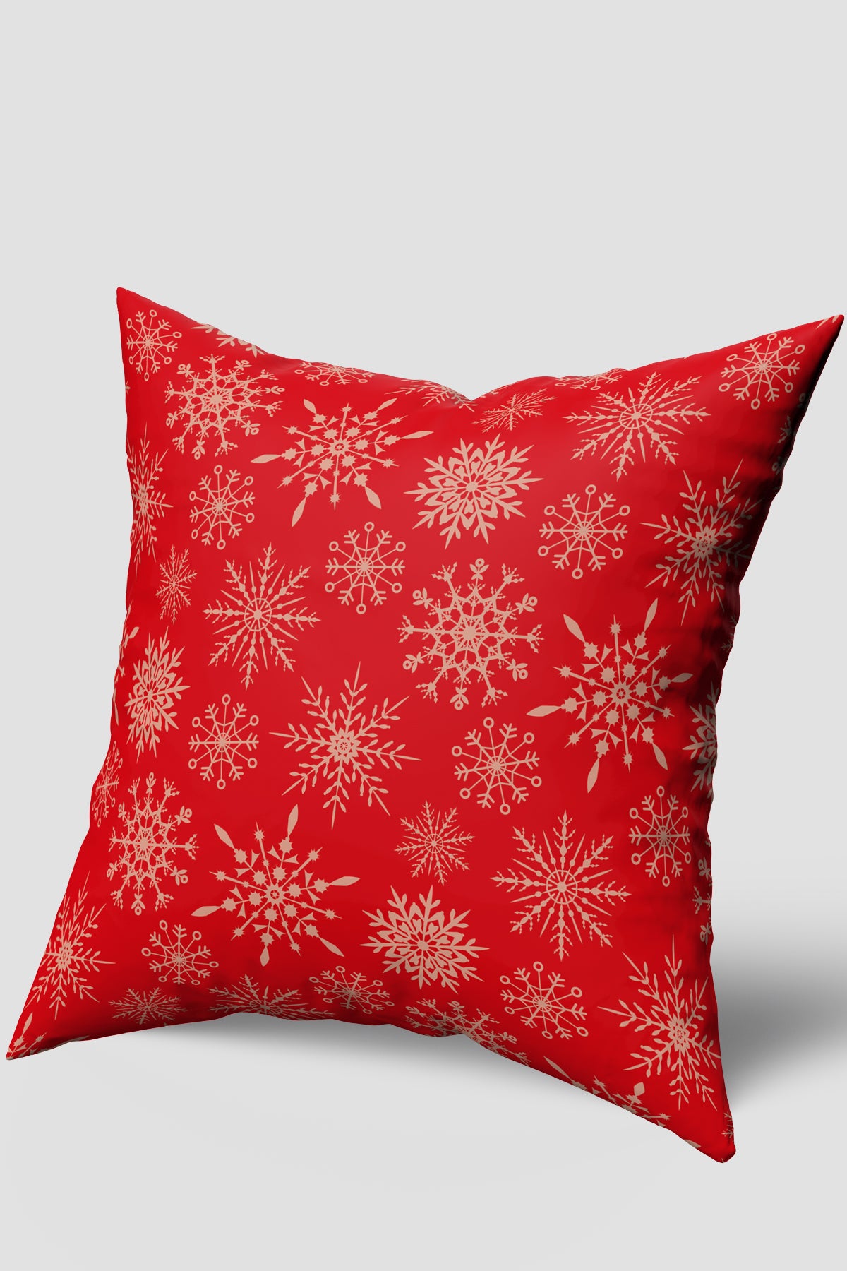 - Kırmızı Kar Tanesi Desenli Yılbaşı Kırlent Kılıfı