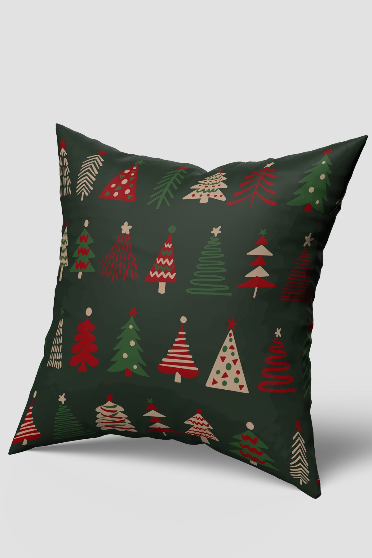 - Koyu Yeşil Kırmızı Çam Ağacı Desenli Yılbaşı Kırlent Kılıfı