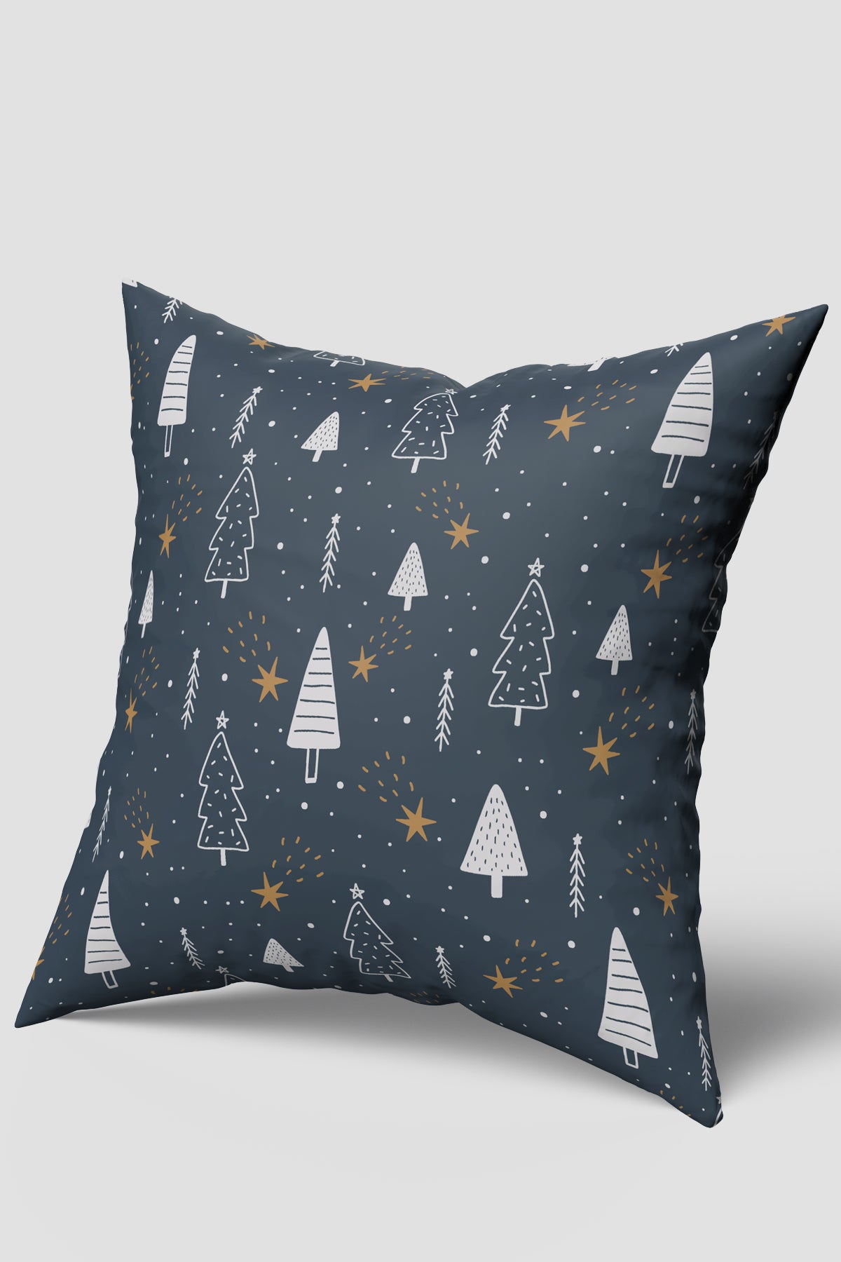 - Lacivert Çam Ağacı Ve Yıldız Desenli Yılbaşı Kırlent Kılıfı