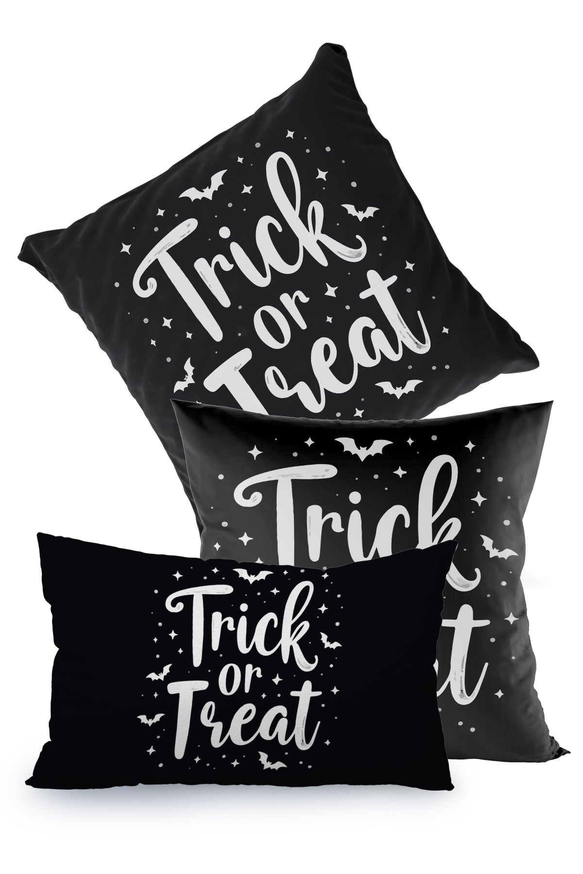 - Siyah Trick or Treat Yazılı Halloween Temalı Cadılar Bayramı Kırlent Kılıfı