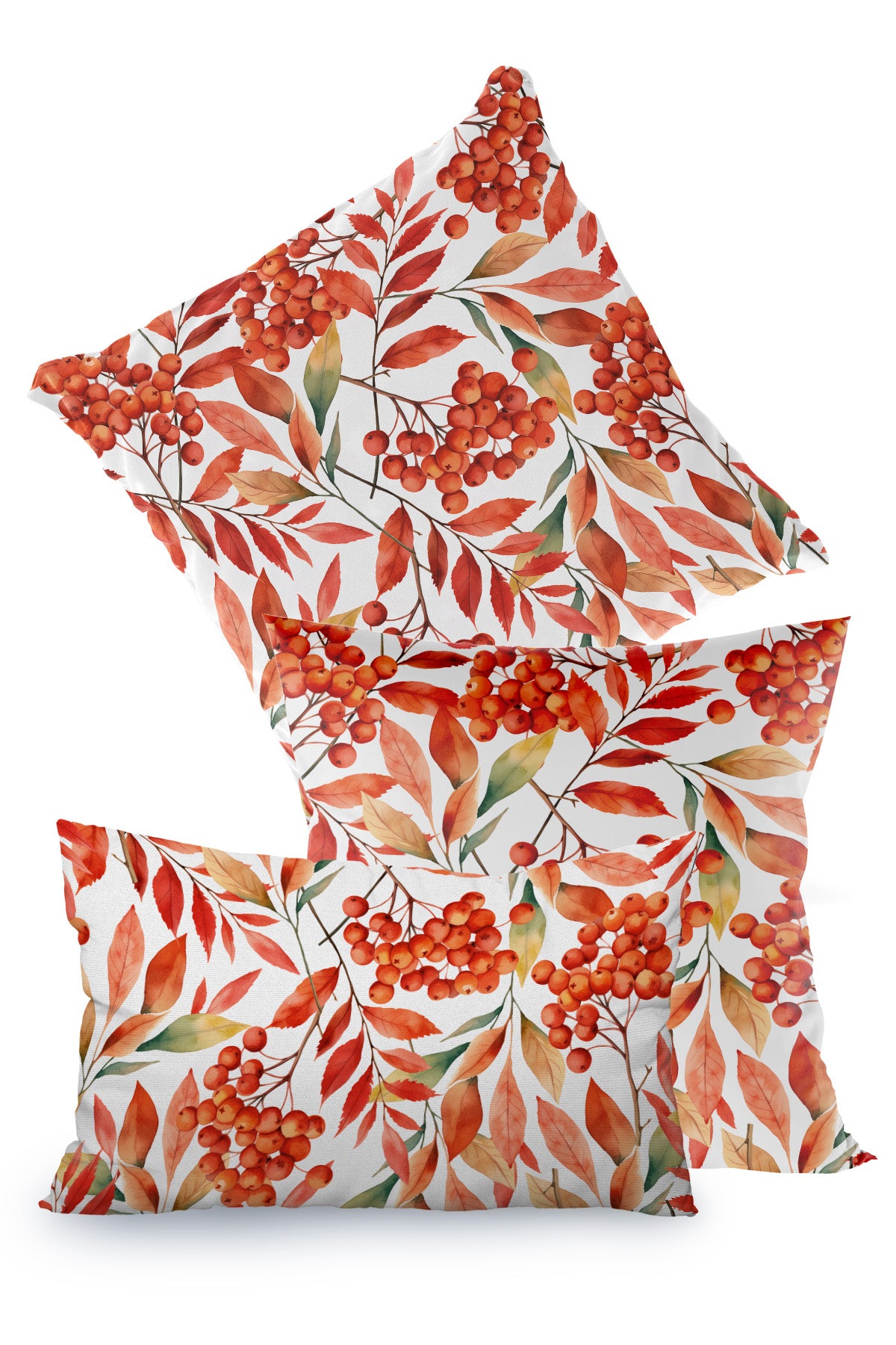 - Sonbahar Temalı Meyve Yaprak Desenli Kırlent Kılıfı