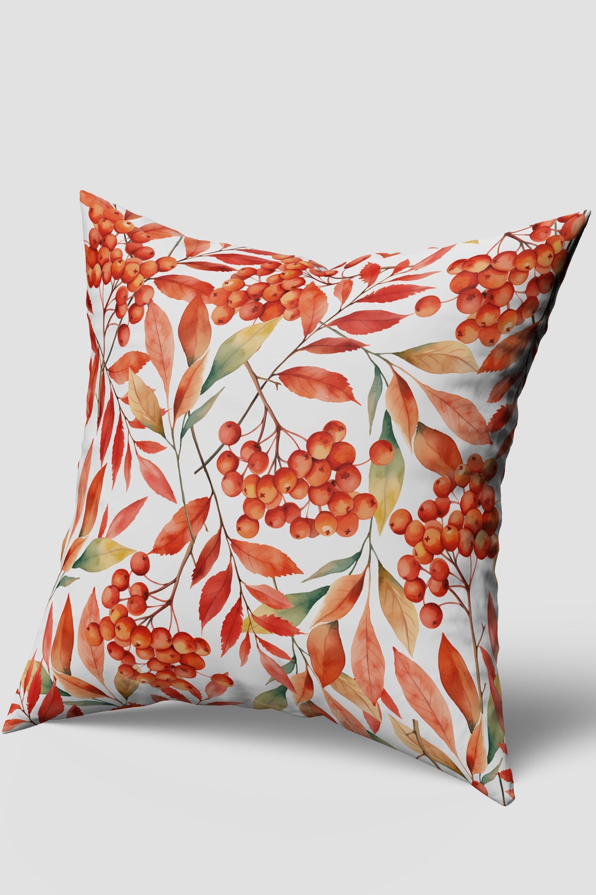 Sonbahar Temalı Meyve Yaprak Desenli Kırlent Kılıfı