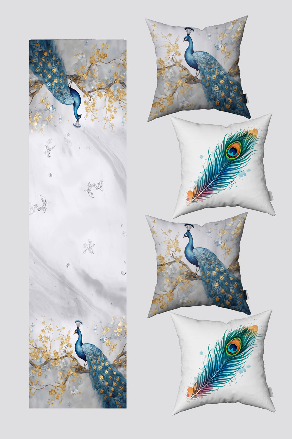 Yeşil Krem Etnik Tavus Kuşu Figürlü kırlent Kılıfı