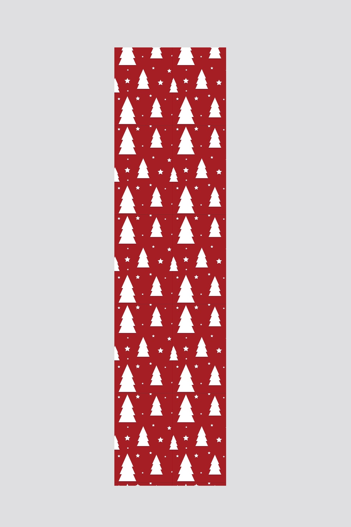 Kırmızı Beyaz Çam Ağacı Desenli Yılbaşı Runner 40x140