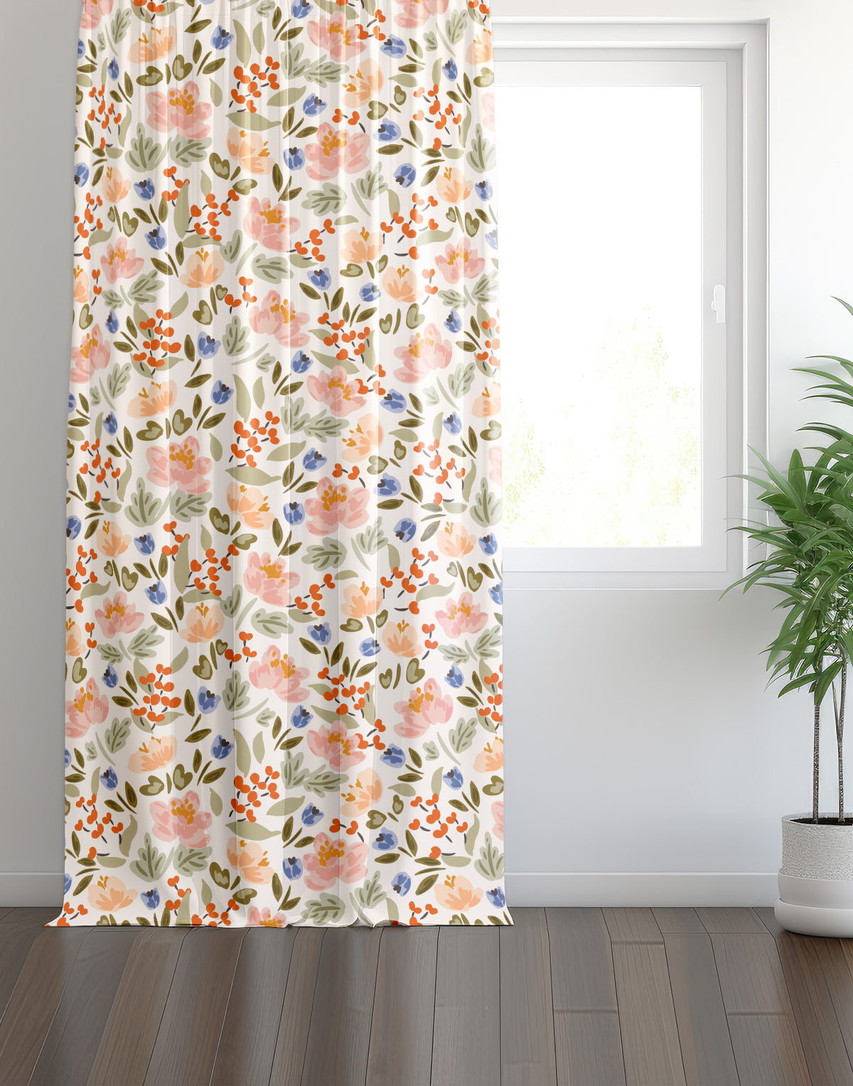 - Krem Sevimli Kır Çiçeği Desenli Fon Perde