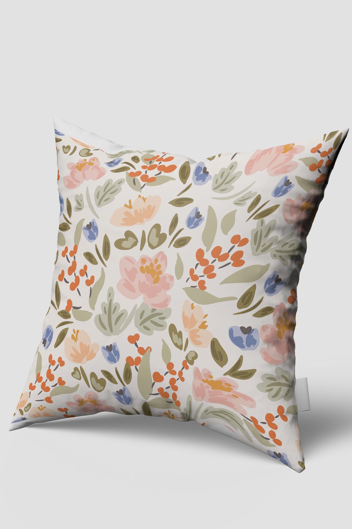 - Krem Sevimli Kır Çiçeği Desenli Kırlent Kılıfı