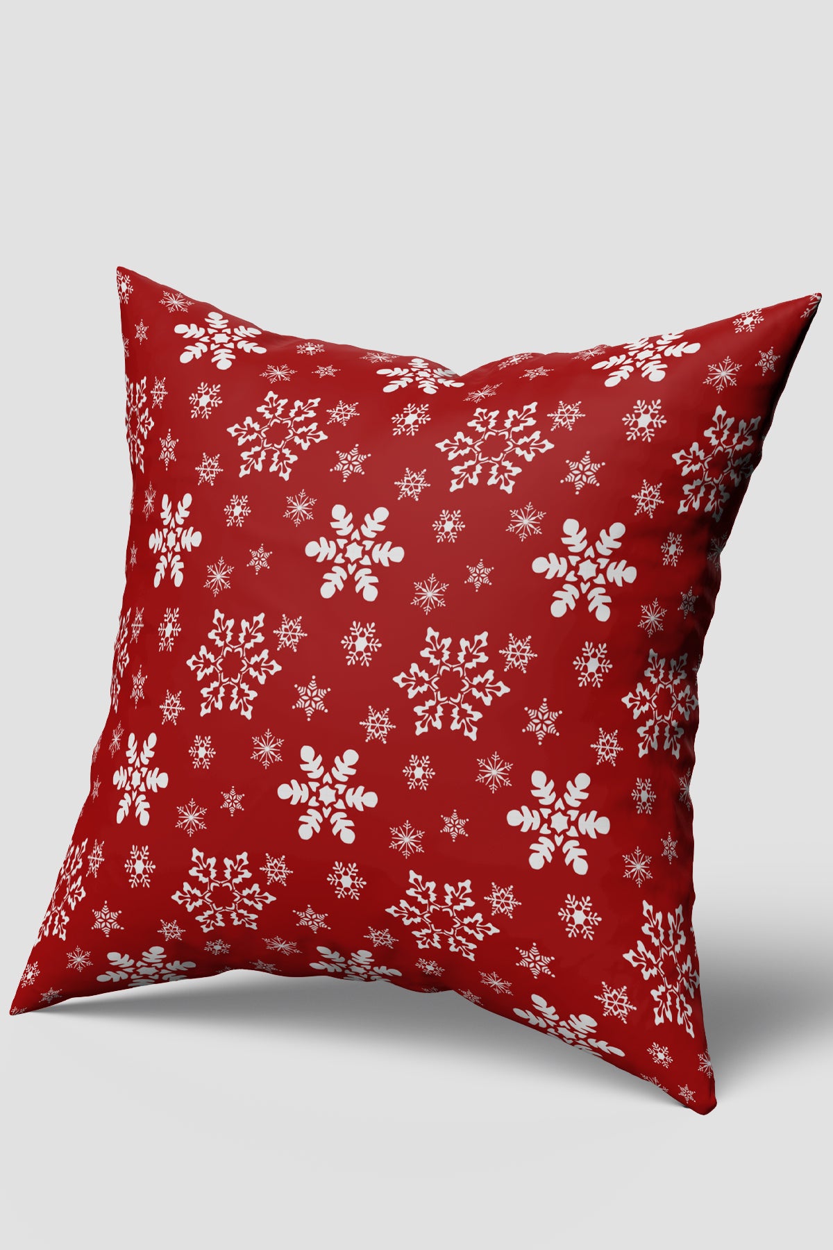 - Kırmızı Beyaz Kar Taneleri Yılbaşı Kırlent Kılıfı