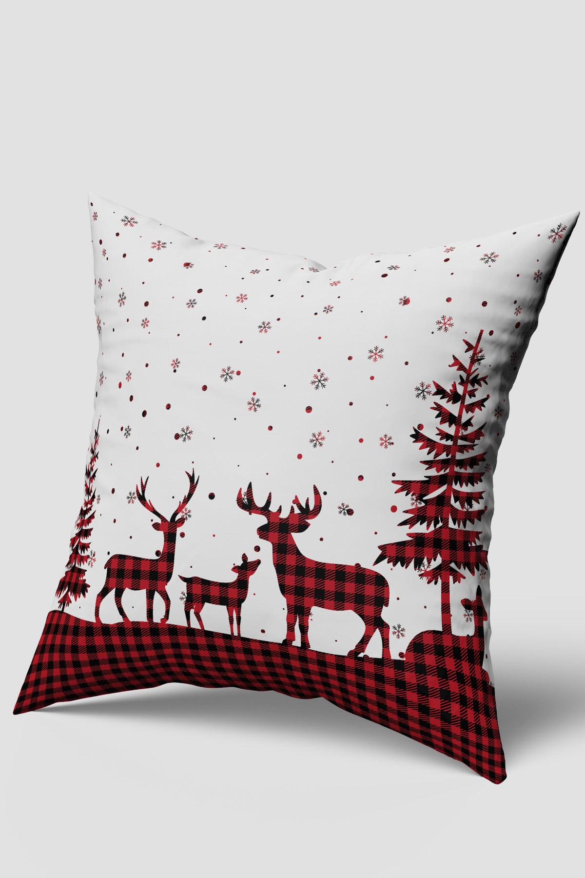 - Kırmızı Ekose Yılbaşı Geyikleri Kırlent Kılıfı