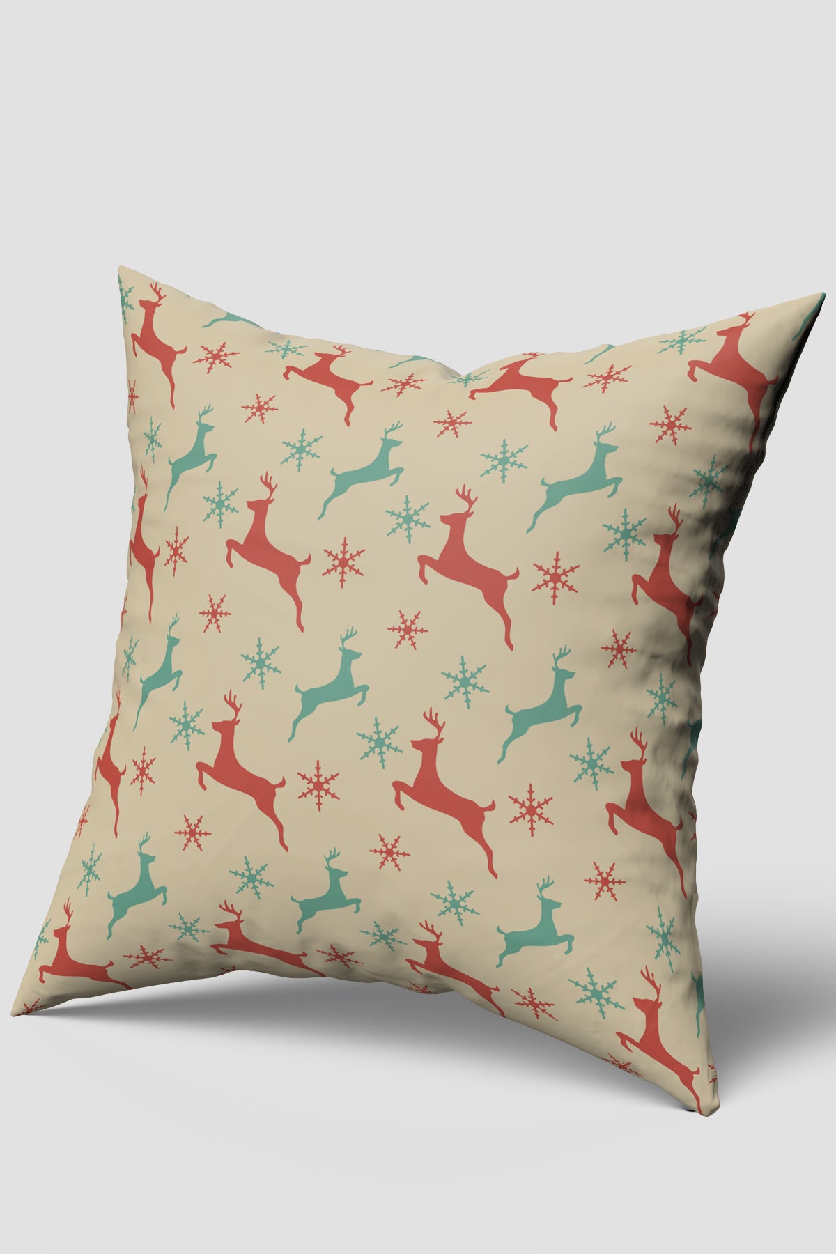 - Yeşil Kırmızı Geyik Desenli Yılbaşı Kırlent Kılıfı