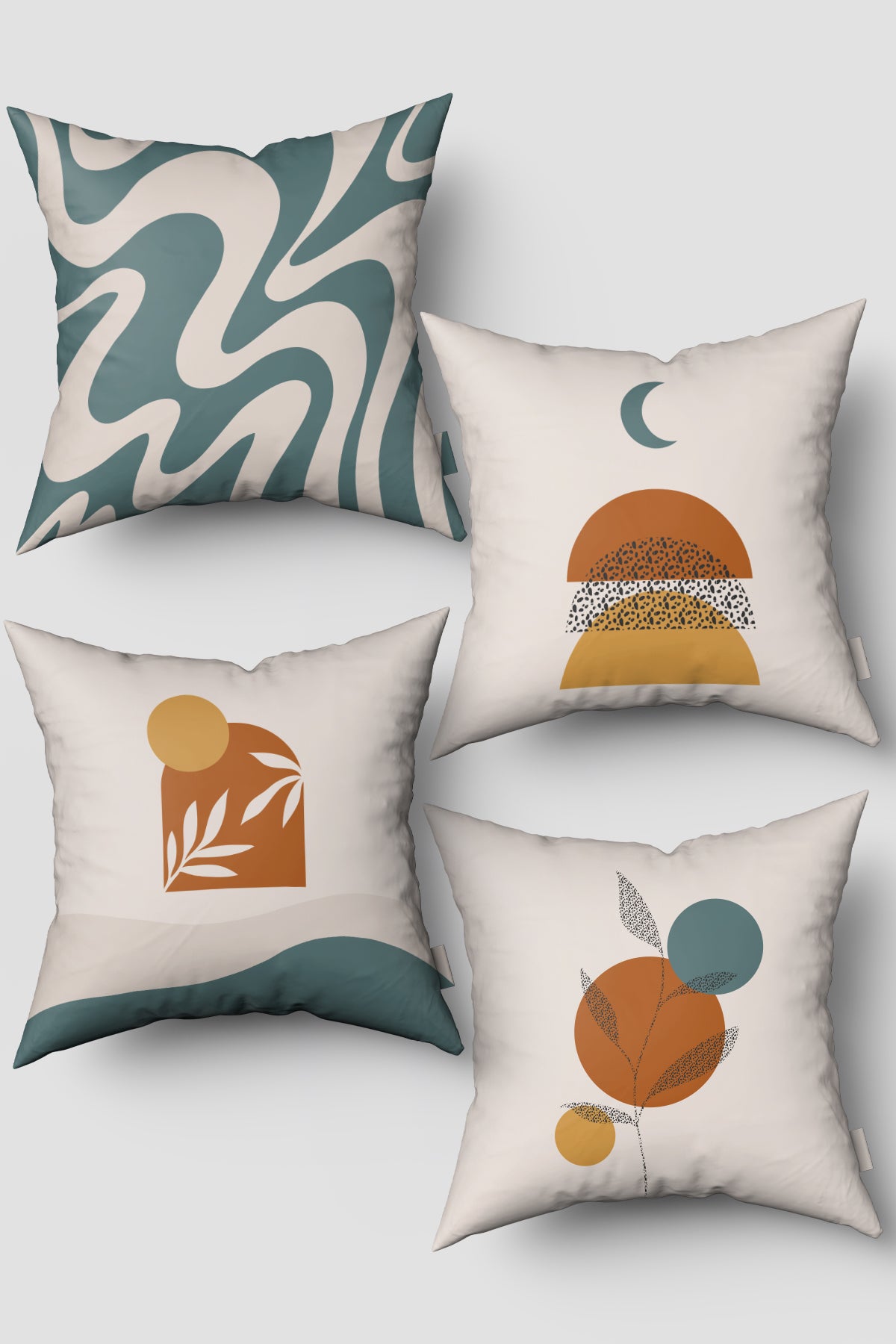 - Krem Bohem Geometrik Desenli 4'lü Kırlent Kılıfı Seti 50x50cm