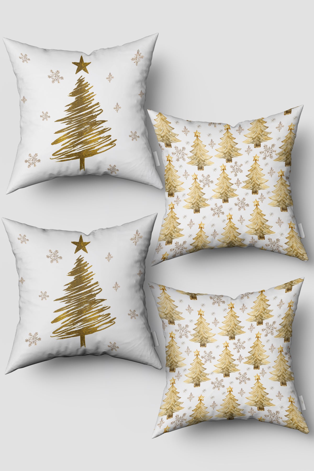 - Noel Temalı Beyaz Işıltılı Sarı Çam Ağacı ve Kar Taneleri Yılbaşı 4'lü Kırlent Kılıfı Seti