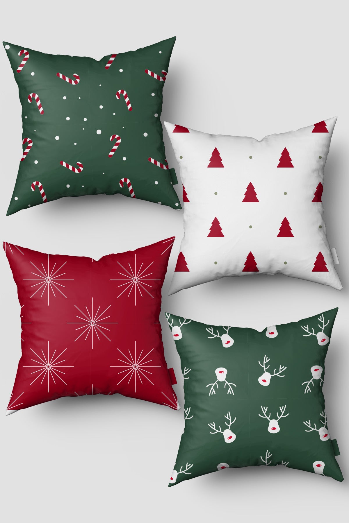 - Yeşil Kırmızı Çam Ağacı ve Baston Şeker Yılbaşı 4'lü Kırlent Kılıfı Seti