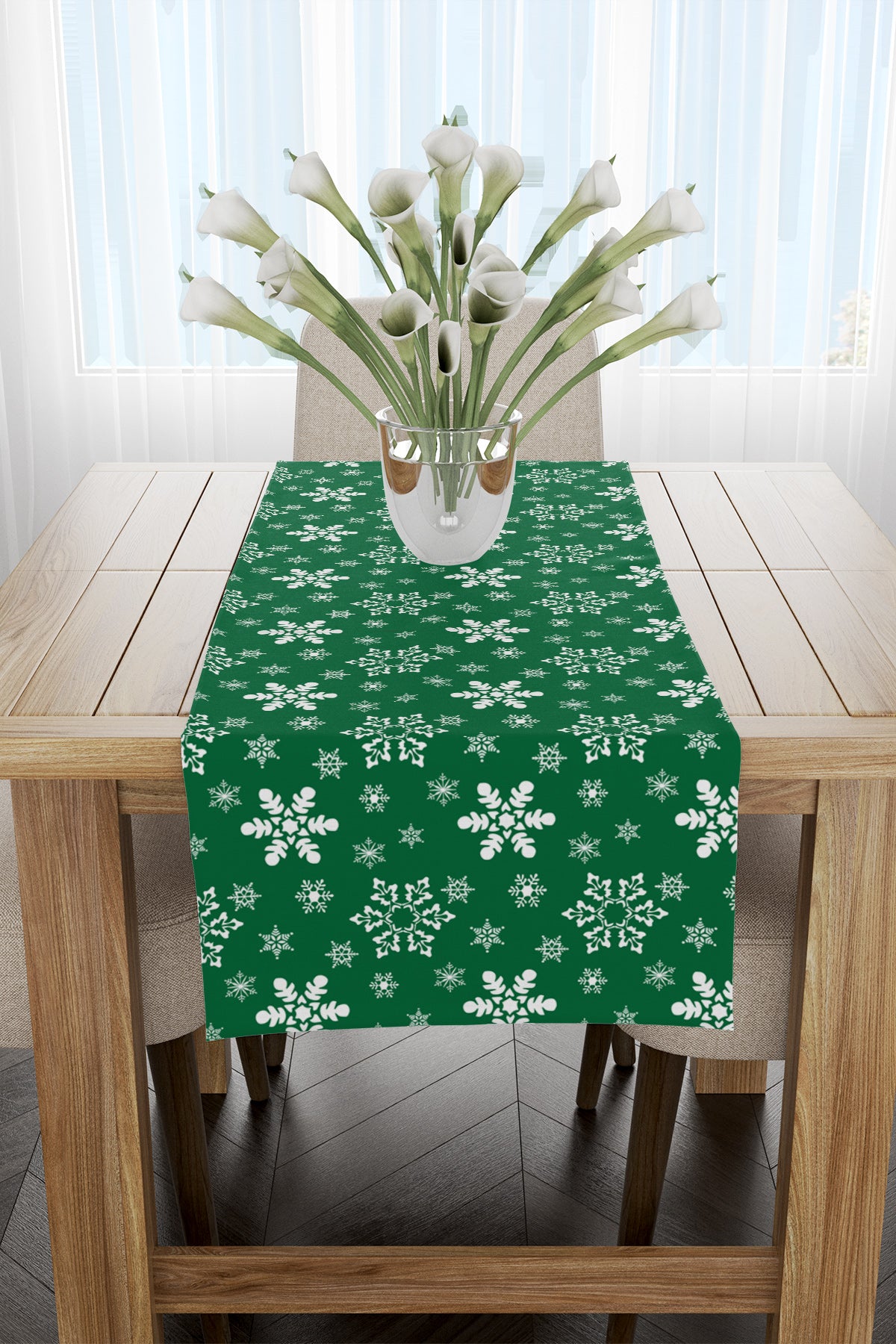 Yeşil Beyaz Kar Taneleri Desenli Yılbaşı Runner