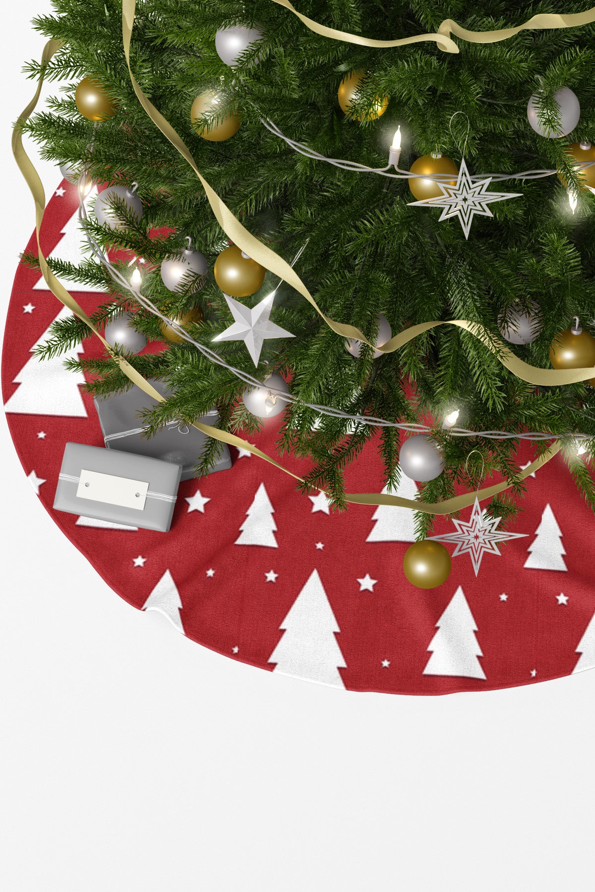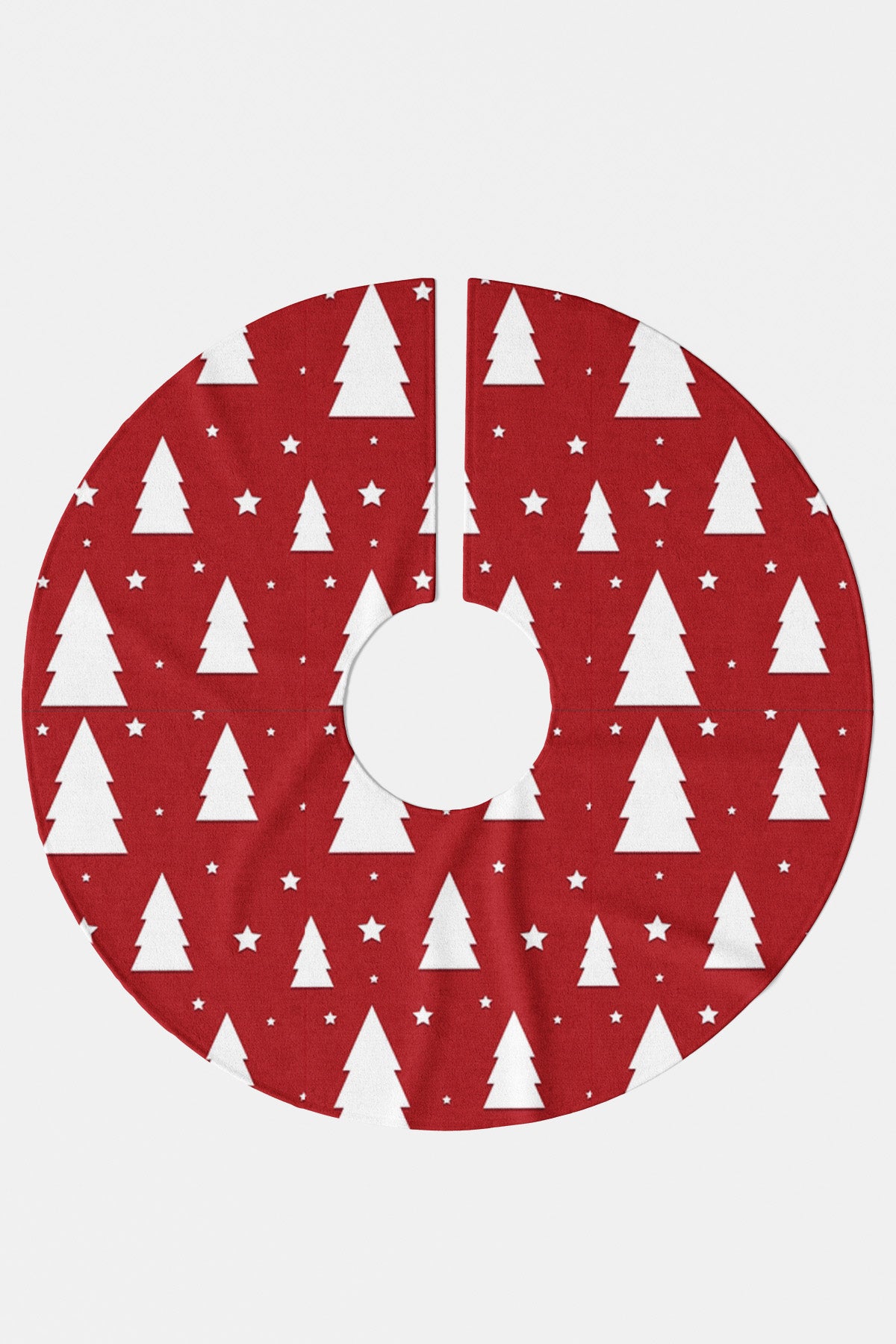 - Kırmızı Beyaz Çam Ağacı Desenli Yılbaşı Çam Ağacı Örtüsü