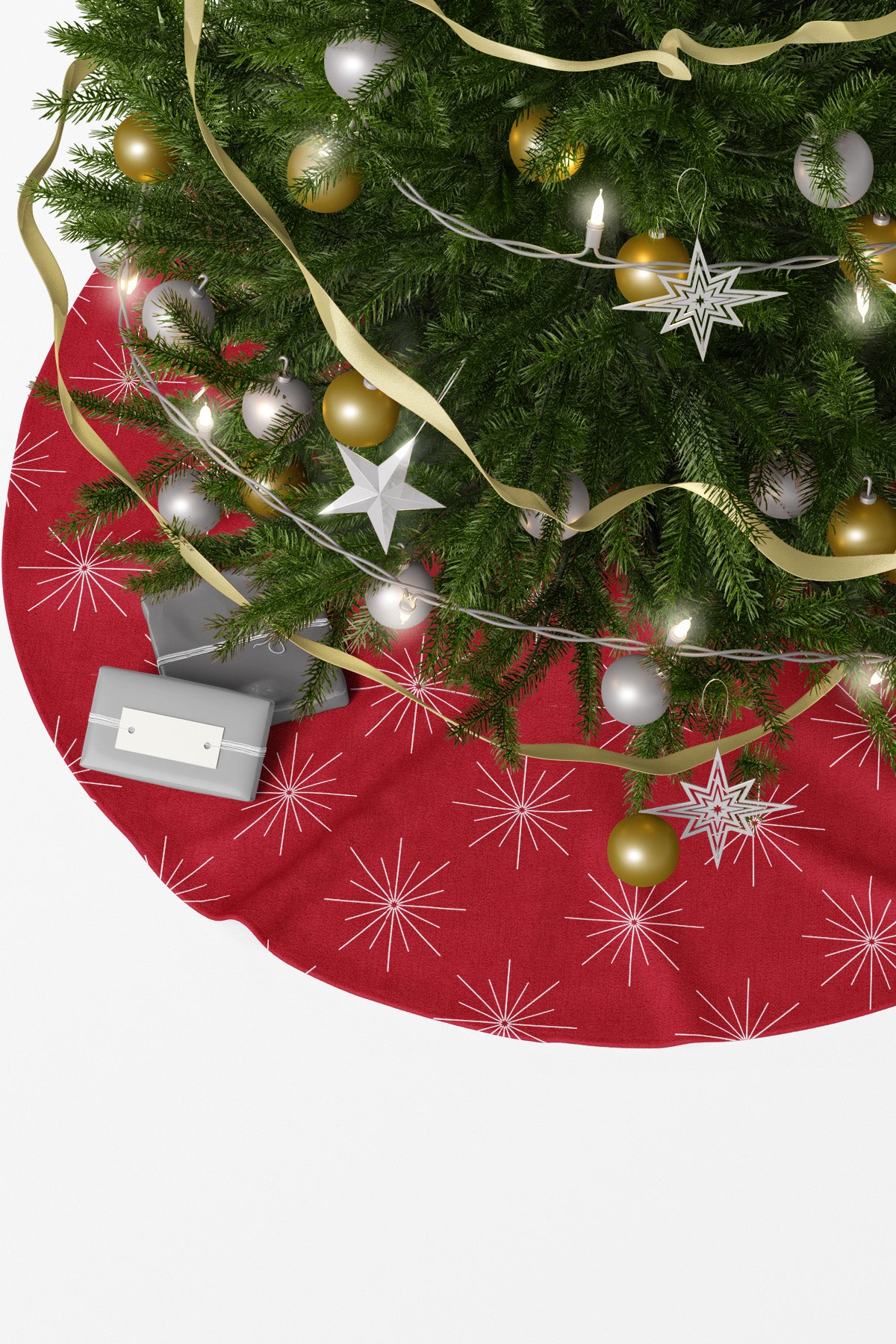 Noel Temalı Kırmızı Yılbaşı Çam Ağacı örtüsü