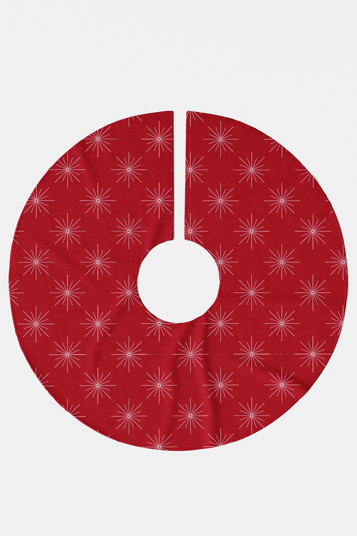 Modern ve dinamik bir yılbaşı dekorasyonu yaratmak için tasarlanmış bu ağaç altı eteği, canlı kırmızı zemin üzerine beyaz, patlayan kar taneleri veya yıldızları andıran geometrik motiflerle süslenmiştir. Kırmızı ve beyazın çarpıcı kontrastı, ağacınızın altına anında festival coşkusu katarken, minimalist ve keskin deseniyle çağdaş bir görünüm sunar. Yılbaşı ışıklarınızın parıltısını yansıtarak hediye alanınızı şık ve enerjik bir şekilde tamamlar.