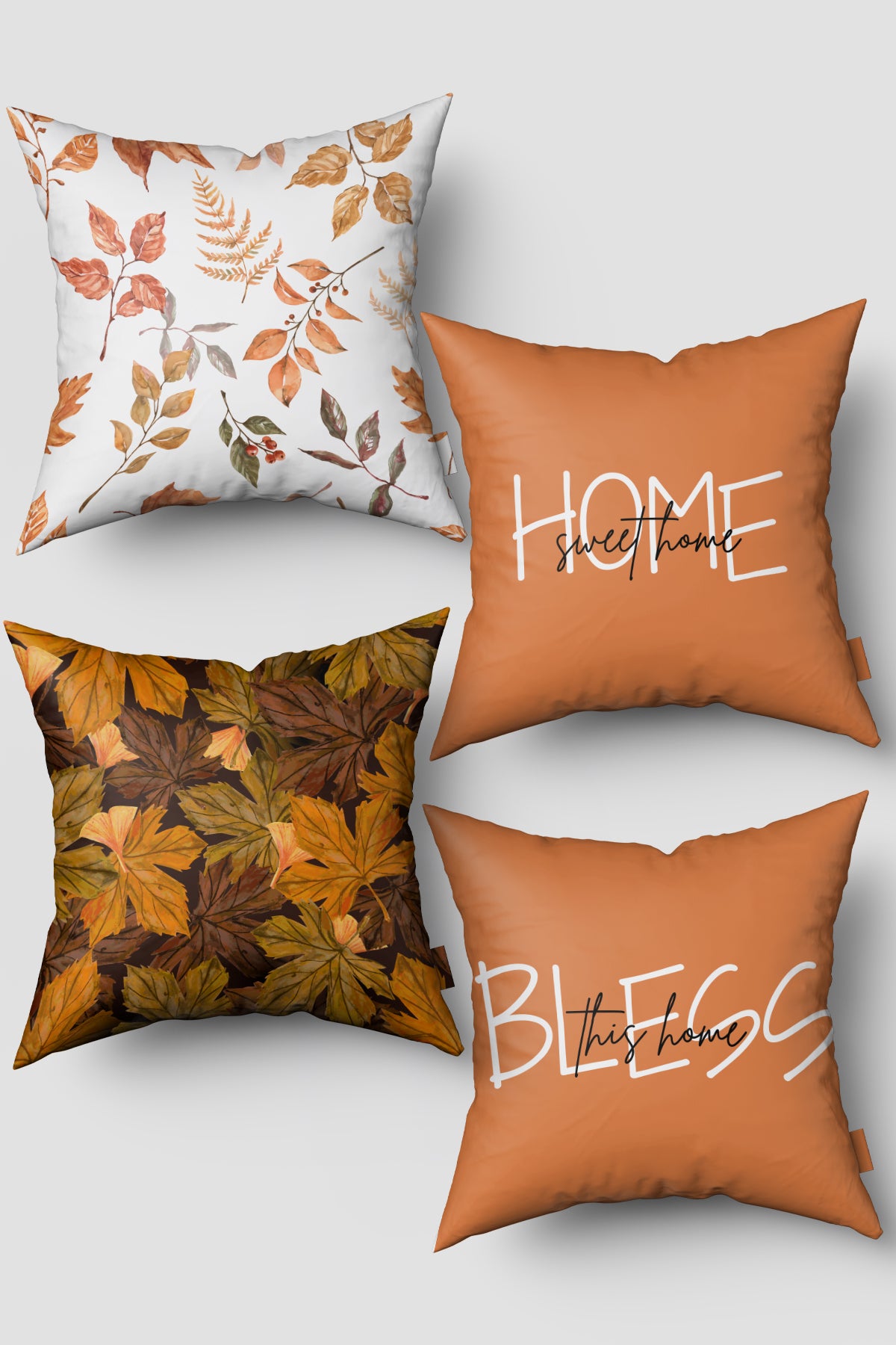 Sonbahar Temalı Yaprak Desenli 4'lü Kırlent Kılıfı Seti 50x50cm