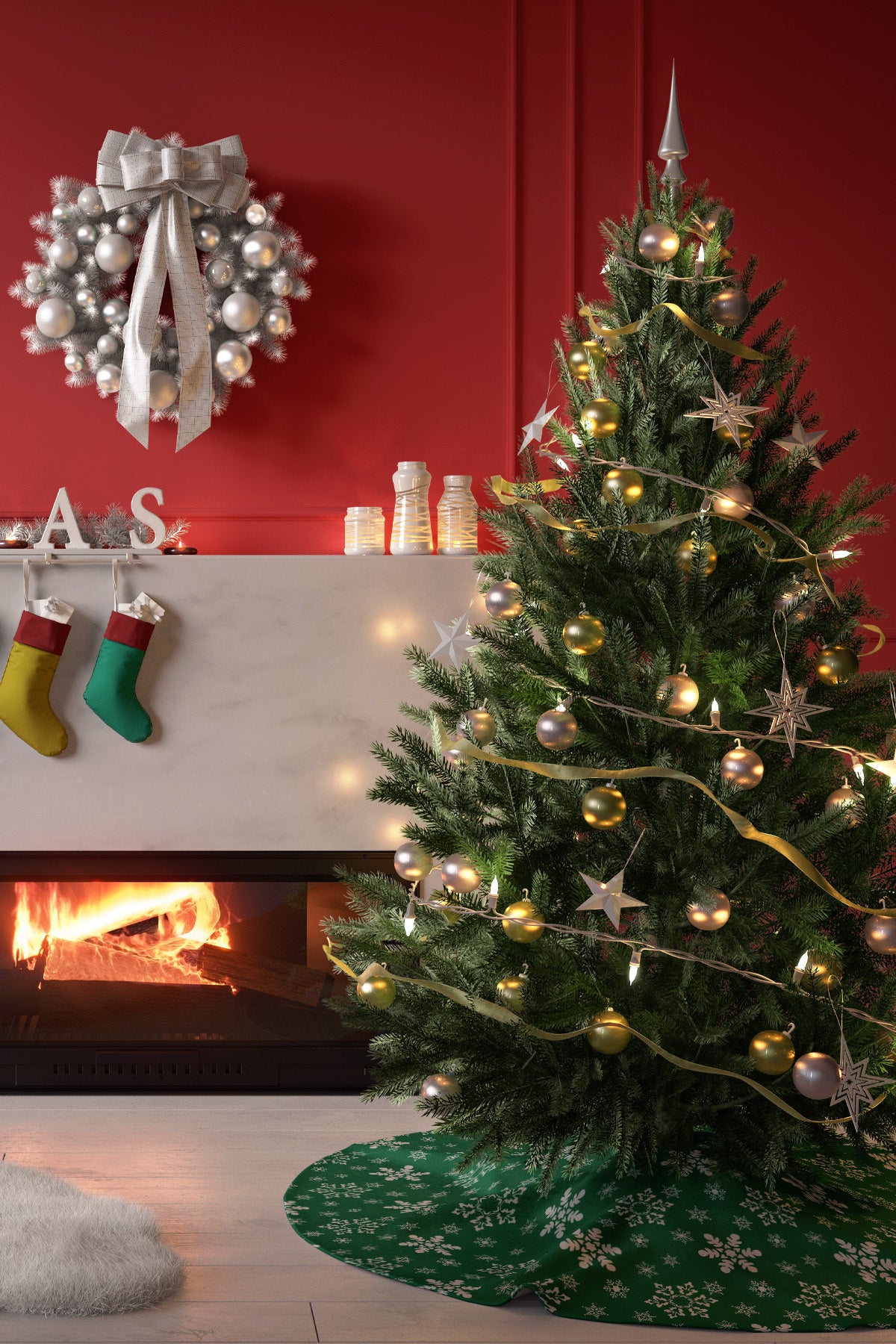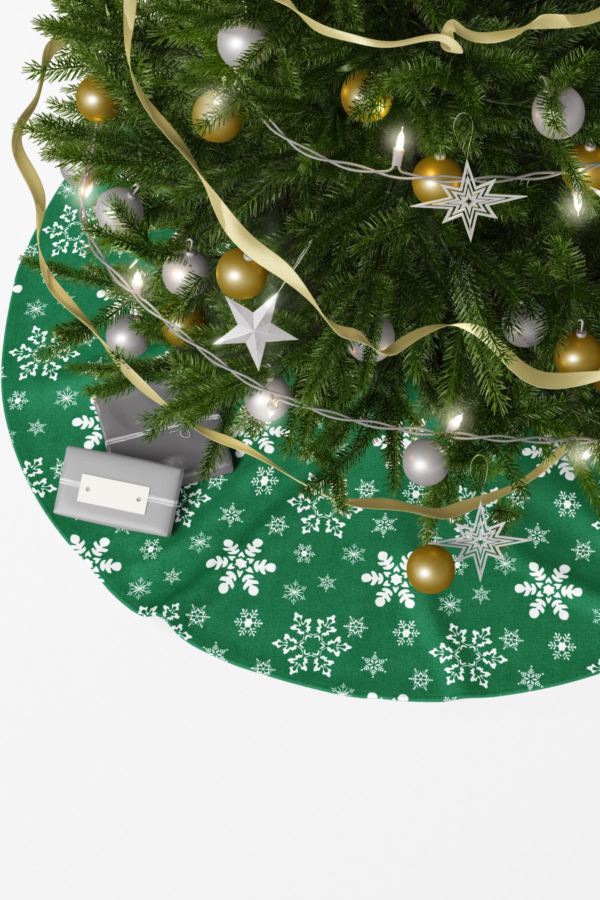 - Yeşil Beyaz Kar Taneleri Desenli Yılbaşı Çam Ağacı Örtüsü