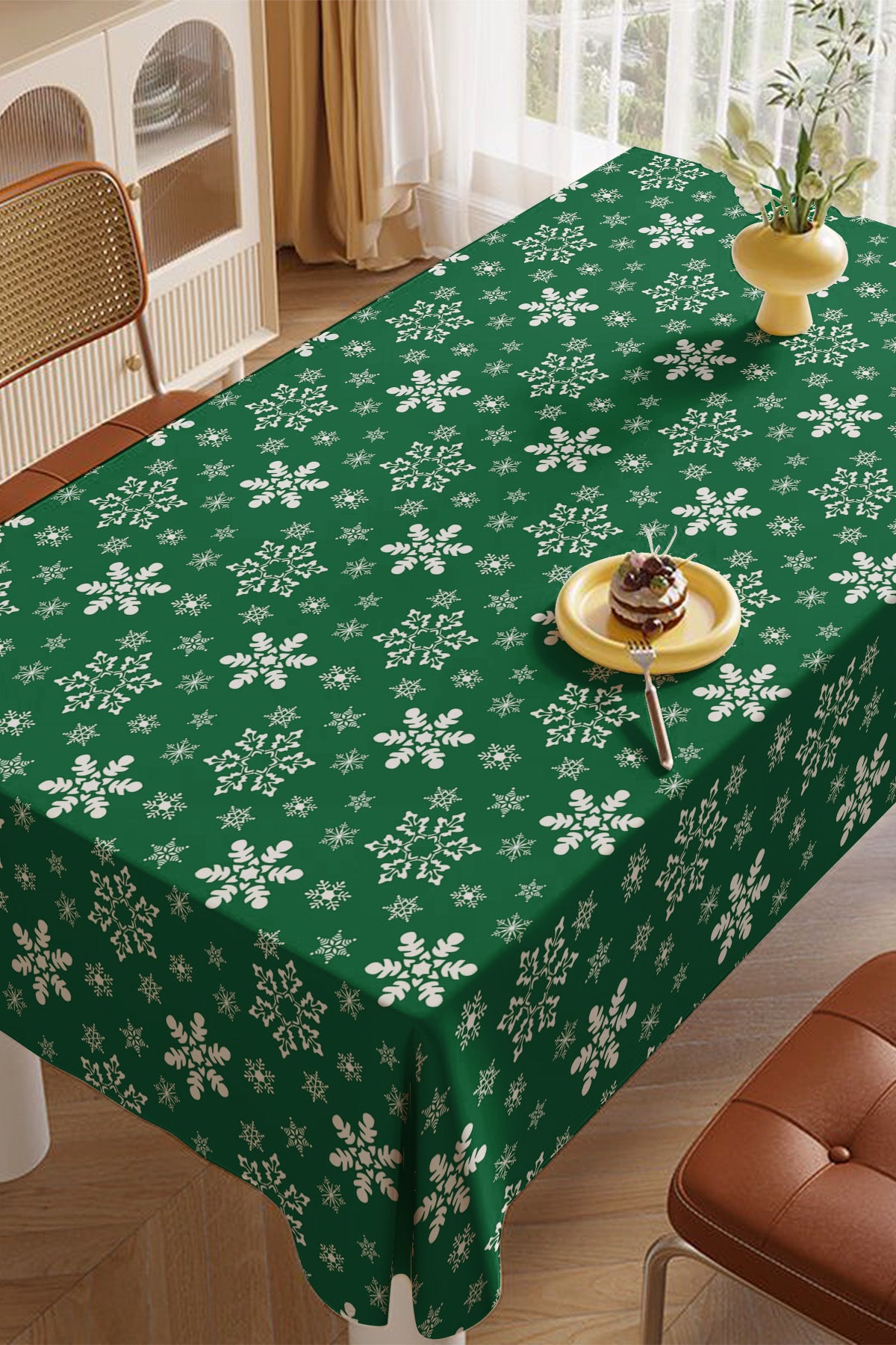 - Yeşil Beyaz Kar Taneleri Desenli Yılbaşı Masa Örtüsü